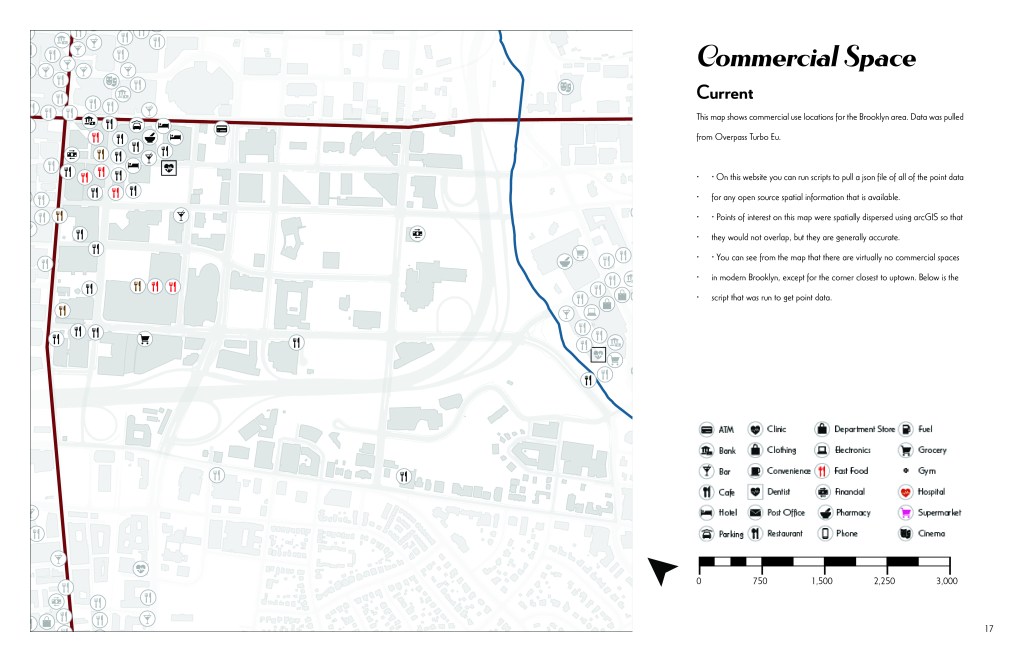 After exporting the cleaned data as a GeoJSON file, I brought it into GIS software to map and study the locations. I grouped the trip generators by type, looked at where they clustered, and examined how they related to existing streets, sidewalks, and redevelopment areas. By buffering key destinations and analyzing patterns, I turned open-source map data into a site-specific tool that helps explain where demand for movement already exists—and where new connections or housing might strengthen the urban fabric.